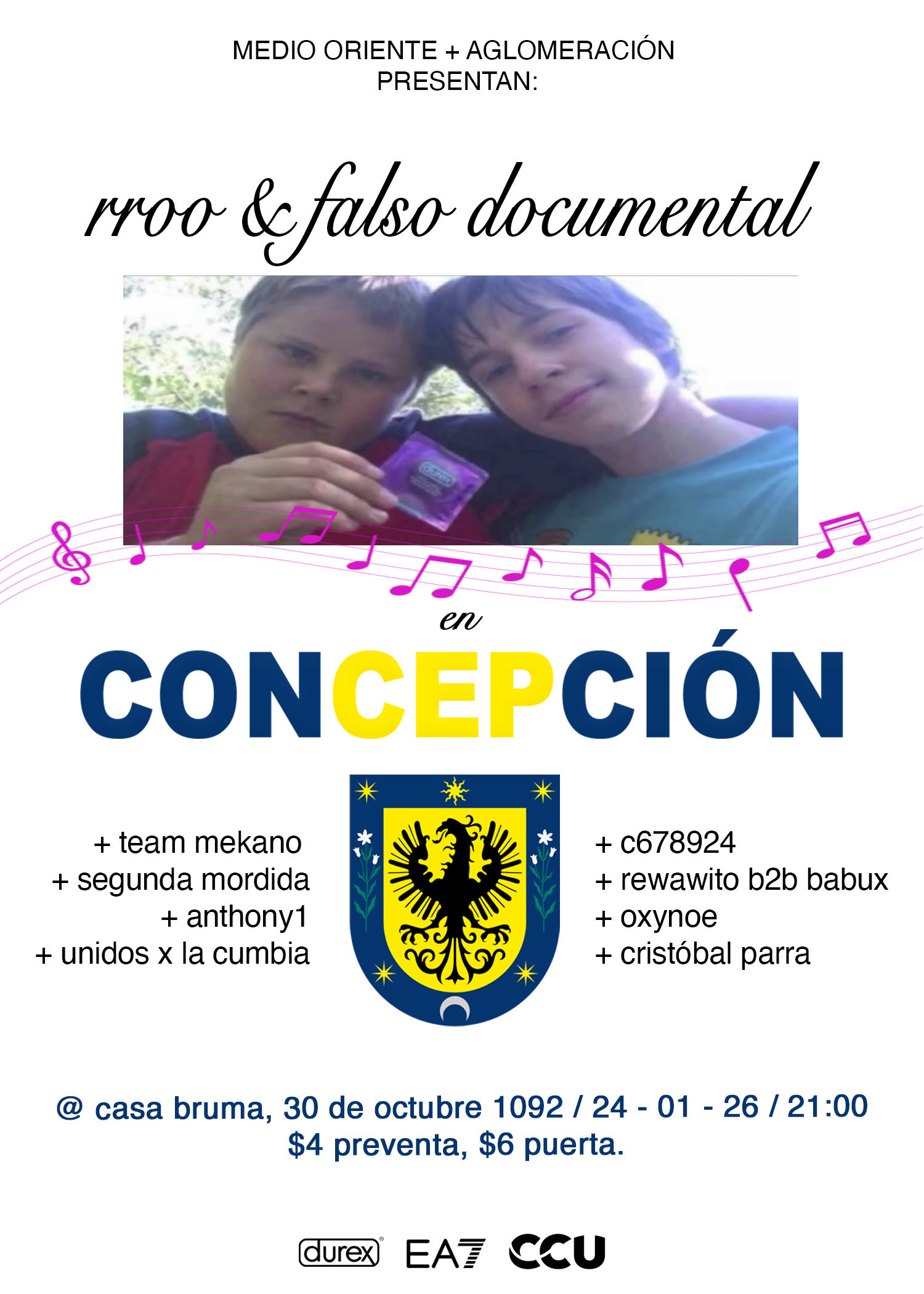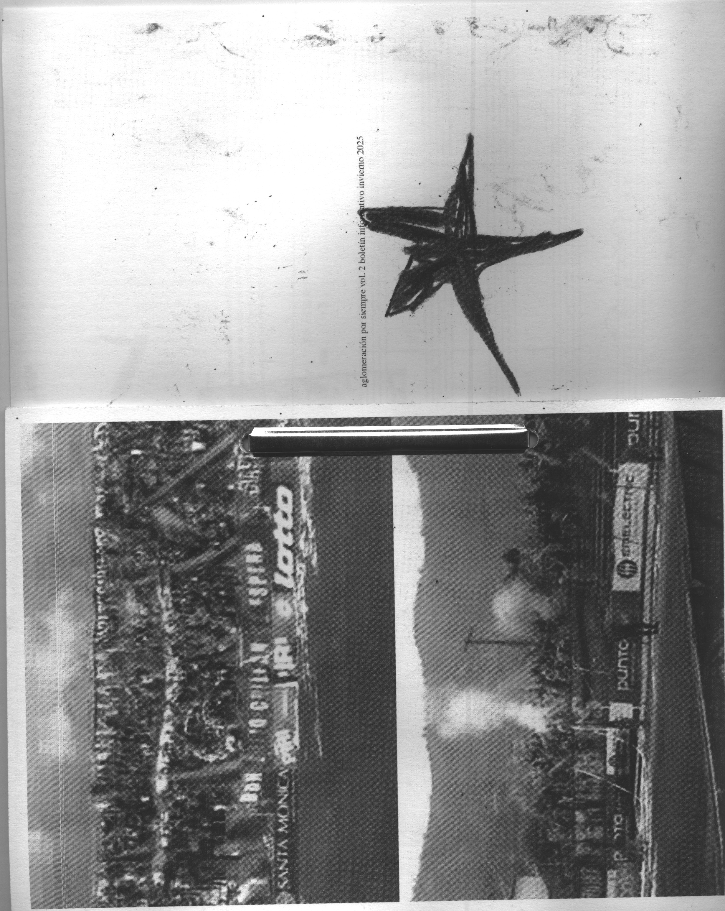Un espectro recorre este fonograma digital y magnético: el espectro de Chile. Que tal fantasma y fantasía sea puro desfallecimiento, no implica que Aglomeración no se sienta inmensamente complacido de ofrecerlo a su público auditor. Tampoco es la tarea de este texto promocional tirar factos o plantear una actitud chill de cojones frente a la forma y contenido del fonograma: Aglomeración descarta completamente una apelación juvenil a su público. sin aspavientos y Trío Hogar decidieron realizar una publicación conjunta; luego de despejar la posibilidad de trabajar juntos —metodologías incompatibles— zanjaron que cada lado de 30 minutos de la cinta magnética fuera ocupado por su trabajo. El único punto en común es que la tarea técnico-fonográfica estaría a cargo de Fedor Cambiazo. Nada hacía presagiar que, a pesar de la labor separada, lo obrado se acerca a “lo mismo”. Ese “lo mismo” es el espectro de Chile (“Chile” no puede ser otra cosa que un espectro), la “escenografía musical vigente” (te lo dice Trío Hogar en su publicación en vivo 2024), “el sentido nacionalista en la música chilena” delirado por Roberto Escobar en 1961, los “fragmentos reverberados y no reverberados” utilizados para audio (partitura de B. Vásquez, 2024, realizada por sin aspavientos simultáneamente con la ejecución de sin título #11, 2013-19, de N. Carrasco), los perros que ladran ocasionalmente, las veredas que son regadas de tarde en tarde, las cuerdas tañidas con violencia, lo que el pueblo sabe sobre los ruidos en chileno.